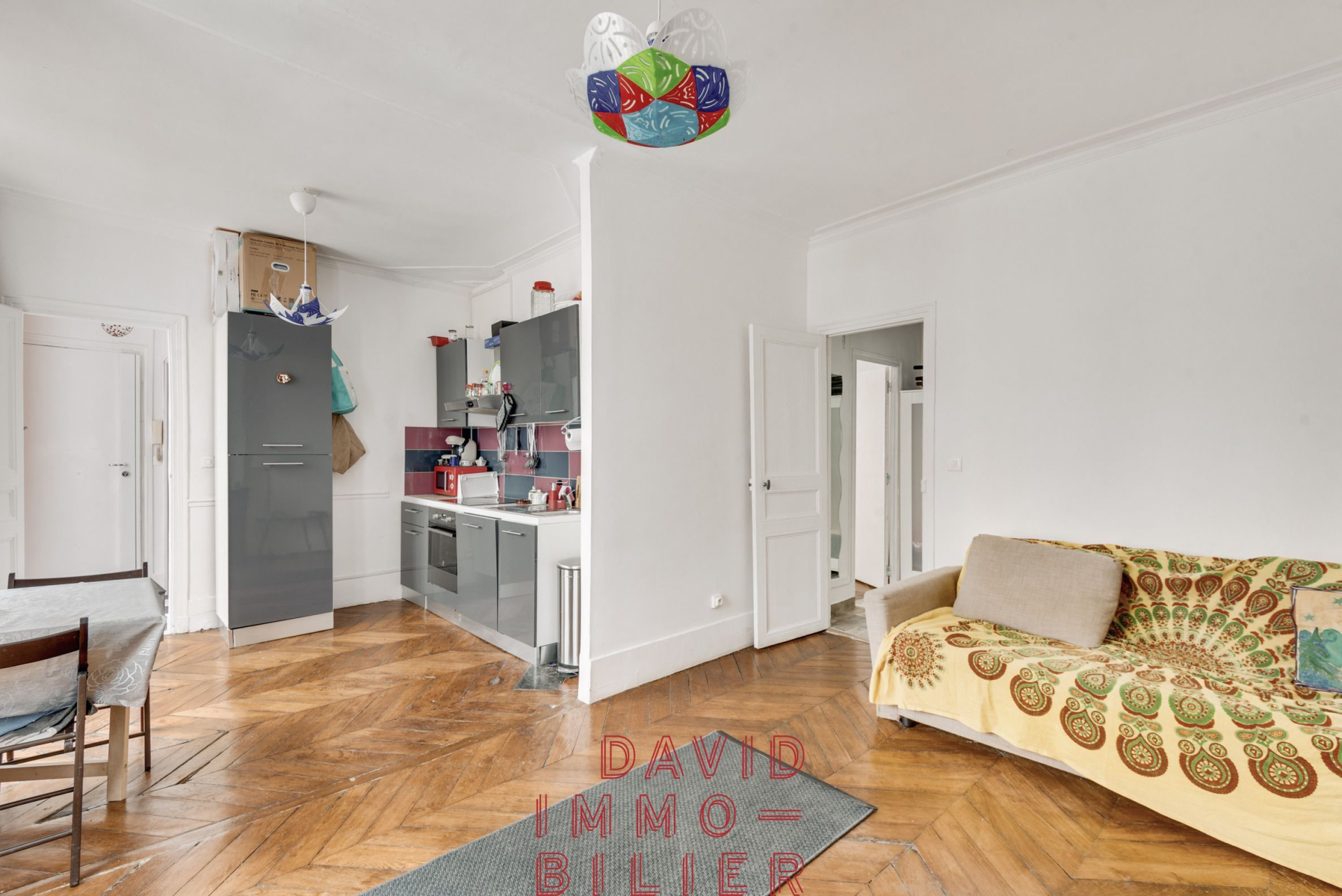 Il est composé d'une entrée, d'un séjour avec sa cuisine ouverte aménagée de 25m² offre un bel espace de vie convivial et lumineux. L'appartement comprend 2 chambres, dont une de 5,69 m², parfaite pour une chambre d'enfant, un bureau. Une salle d'eau avec WC complète l'ensemble. Vous bénéficierez également d'un débarras privatif sur le palier et d'une spacieuse cave de 9 m².